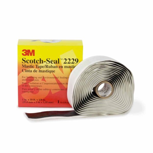 - a cinta 3M Scotch-Seal 2229 cuenta con un respaldo de caucho resistente a los rayos UV, además de proveer autorreparación en caso de un corte o perforación. El eficaz adhesivo de masilla se adhiere sobre superficies irregulares para ofrecer alta resistencia a la humedad.