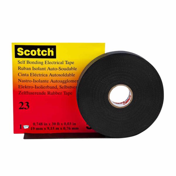 - La cinta aislante Scotch 23 de 3M está compuesta de goma de EPR (Etileno Propileno) con liner separador de Polipropileno. Es una cinta conformable y autofundente, resistente a temperaturas máximas de hasta 90 y 130°C.